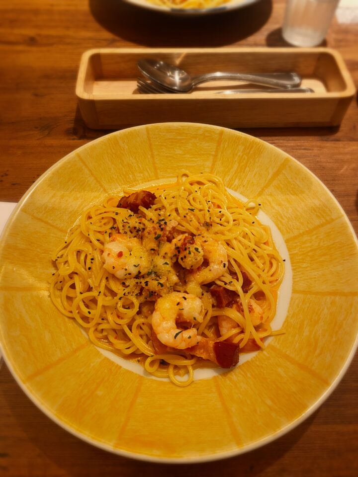 またパスタ屋一丁目では麺の種類も選ぶことができて、スパゲティかフィットチーネから選ぶことができます!今回はスパゲティにしましたが、いつかフィットチーネも食べたいな〜と思っています🎶